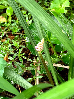ヒガンバナ(彼岸花、曼珠沙華、マンジュシャゲ、またはマンジュシャカ、Lycoris radiata)2019隣家より株分け