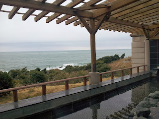 茨城県ひたちなか市の阿字ヶ浦海岸の崖の上にある、市営ホテル「ニュー白亜紀」に、日帰り入浴にやってきました。