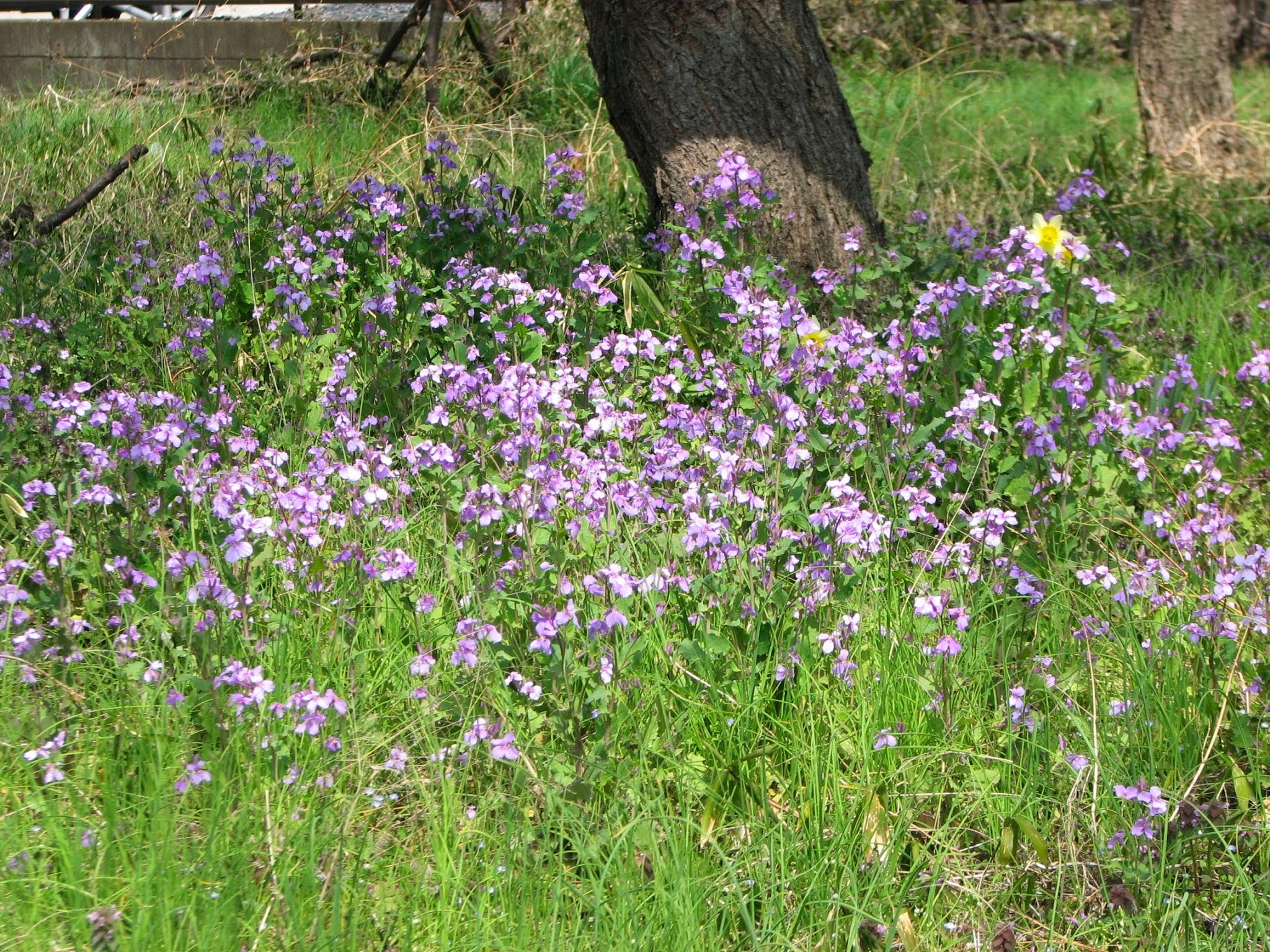 古墳の裏は小さな梅林になっており、地面にはオオアラセイトウ、