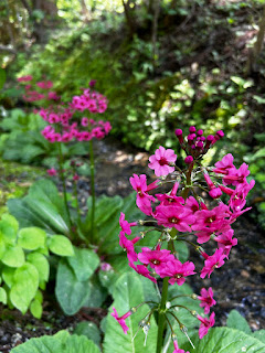 ここから下は白亜紀の地層になるようです御岩神社境内では、石楠花が旬
