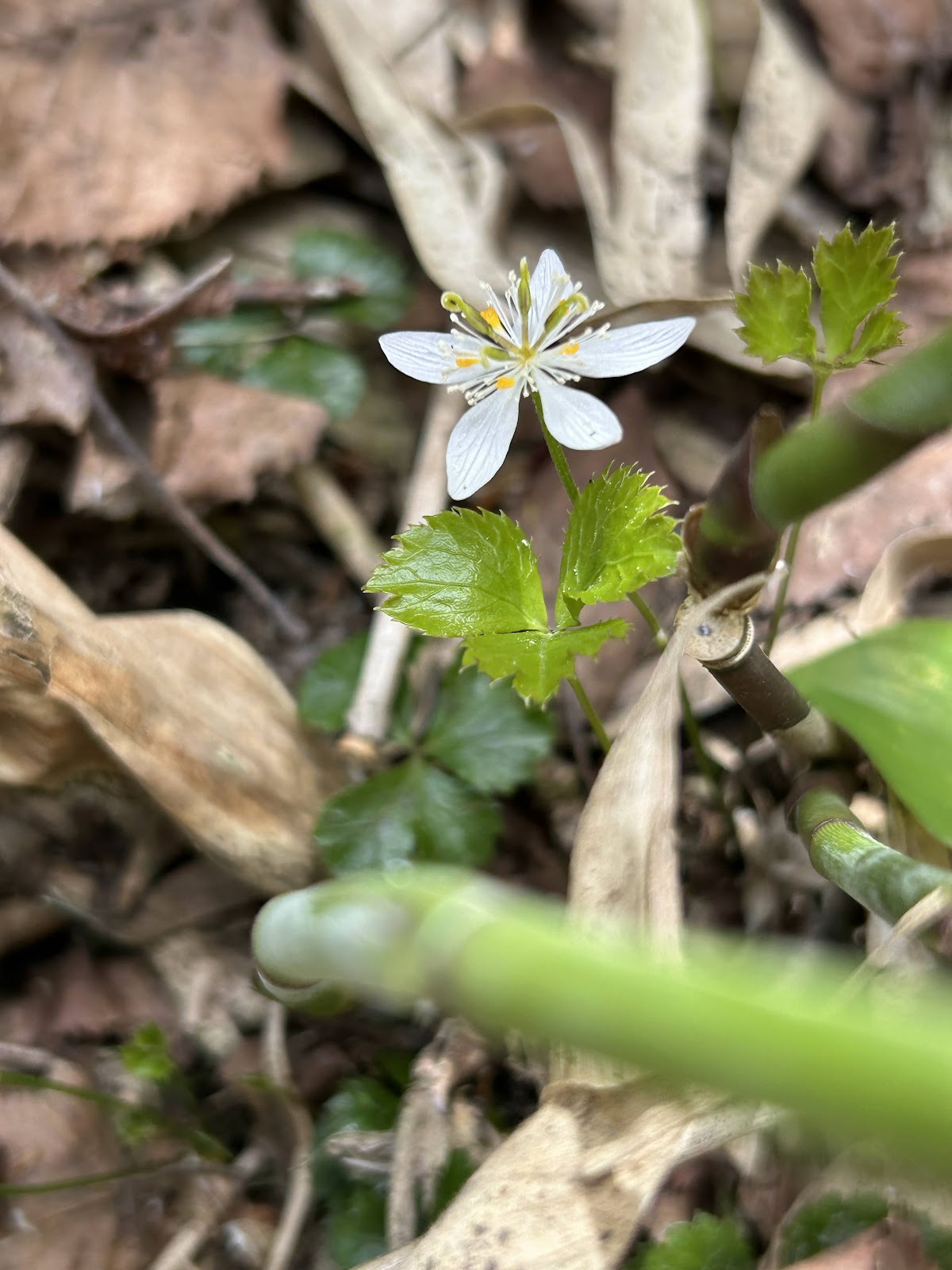 | バイカオウレン 梅花黄蓮 | 五加葉黄蓮 | Coptis quinquefolia キンポウゲ科オウレン属の多年草 | 花之江の郷 | 2012/3/20 花後2023/5/17 | |