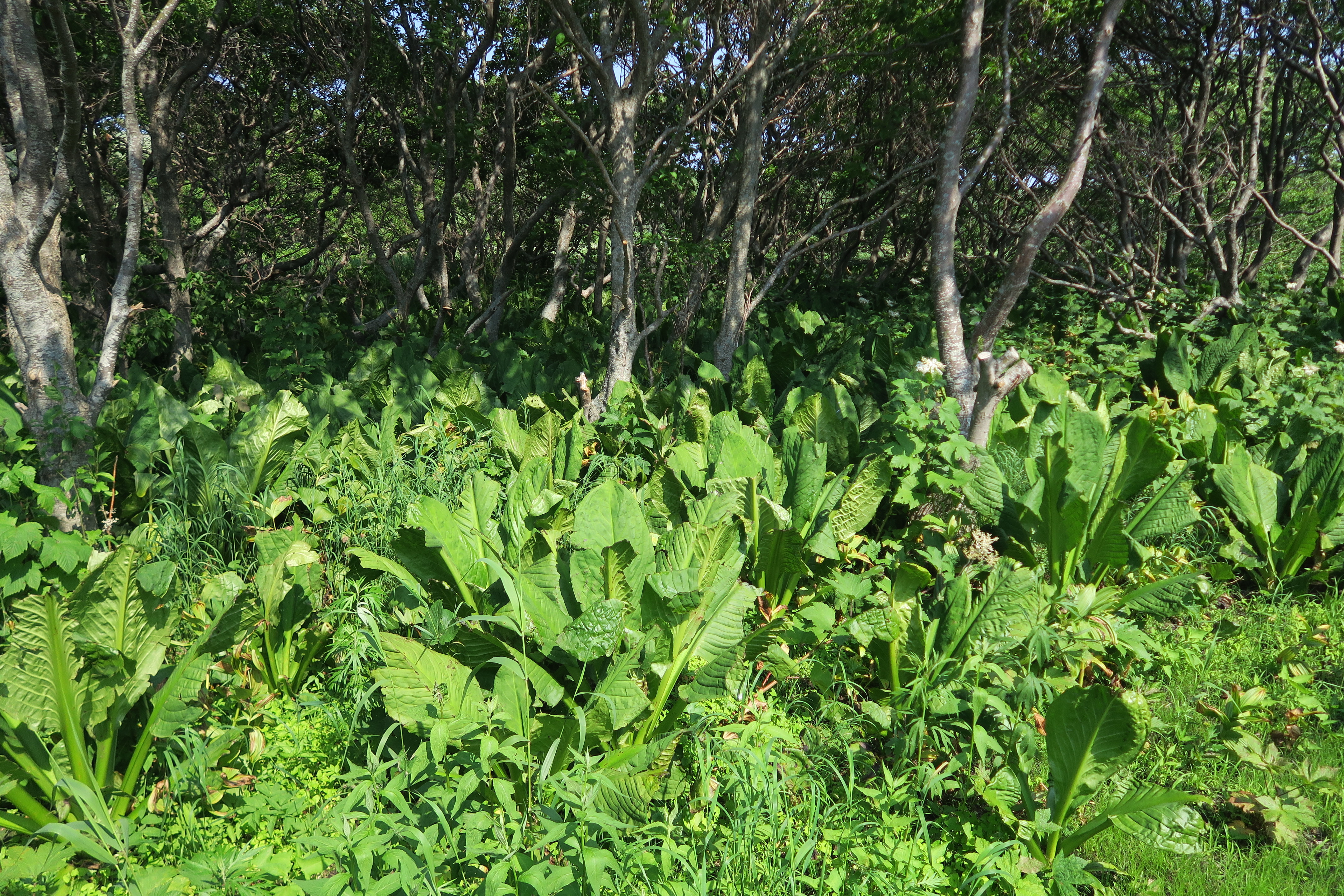 舗装道路をしばらく行くと、レブンアツモリソウ群生地がある